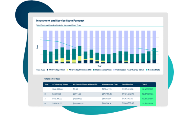 Forecast changes to the future condition and service levels of every asset in your portfolio given decreased, fixed or increased funding. Make well inform capital investment decisions that maximise asset health with accurate scenario modeling across treatment types, intervention points, funding levels required and more.